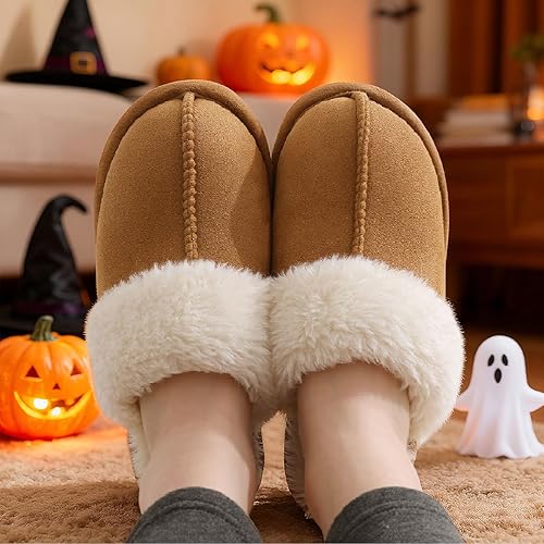 • 𝗪𝗮𝗿𝗺 & 𝗖𝗼𝗺𝗳𝘆: Inside the fuzzy slippers is a wool like faux fur lining and super soft coral fleece, while also featuring breathable suede and a plush collar to help your feet stay toasty and comfortable all day long.